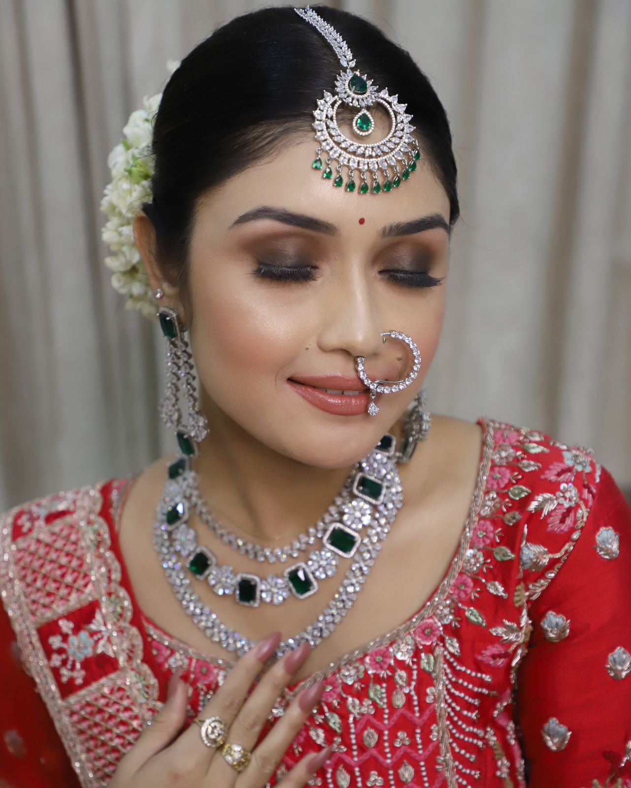 Meet Our renowned MUA, the epitome of elegance and expertise in the world of makeup artistry. With years of experience and a keen eye for detail, she has established herself as a renowned makeup artist. Specializing in bridal makeup, Our renowned MUA crafts stunning looks that blend tradition with contemporary flair, leaving brides feeling confident and radiant on their special day. Her personalized approach and dedication to perfection have earned her a loyal clientele who trust her to enhance their natural beauty and create unforgettable transformations. Our renowned MUA's passion for her craft shines through in every stroke of her brush, making her a sought-after name in the industry.