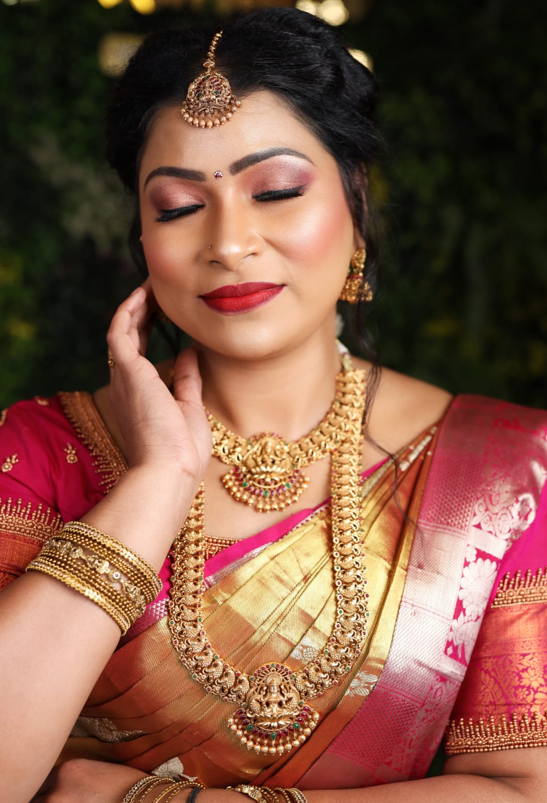 Meet Our renowned MUA, the epitome of elegance and expertise in the world of makeup artistry. With years of experience and a keen eye for detail, she has established herself as a renowned makeup artist. Specializing in bridal makeup, Our renowned MUA crafts stunning looks that blend tradition with contemporary flair, leaving brides feeling confident and radiant on their special day. Her personalized approach and dedication to perfection have earned her a loyal clientele who trust her to enhance their natural beauty and create unforgettable transformations. Our renowned MUA's passion for her craft shines through in every stroke of her brush, making her a sought-after name in the industry.