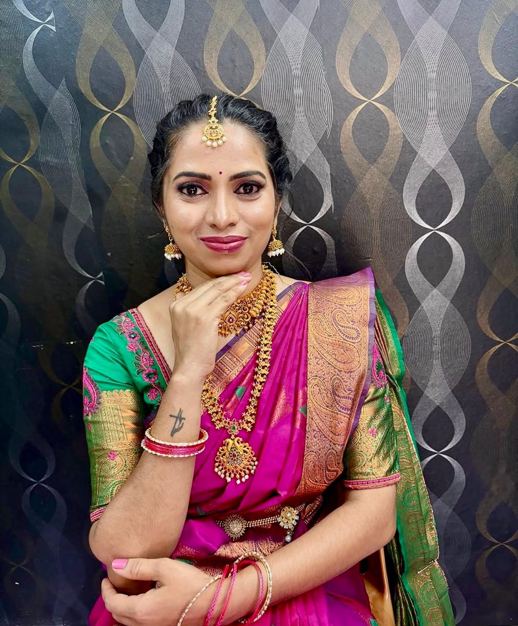 Meet Our renowned MUA, the epitome of elegance and expertise in the world of makeup artistry. With years of experience and a keen eye for detail, she has established herself as a renowned makeup artist. Specializing in bridal makeup, Our renowned MUA crafts stunning looks that blend tradition with contemporary flair, leaving brides feeling confident and radiant on their special day. Her personalized approach and dedication to perfection have earned her a loyal clientele who trust her to enhance their natural beauty and create unforgettable transformations. Our renowned MUA's passion for her craft shines through in every stroke of her brush, making her a sought-after name in the industry.