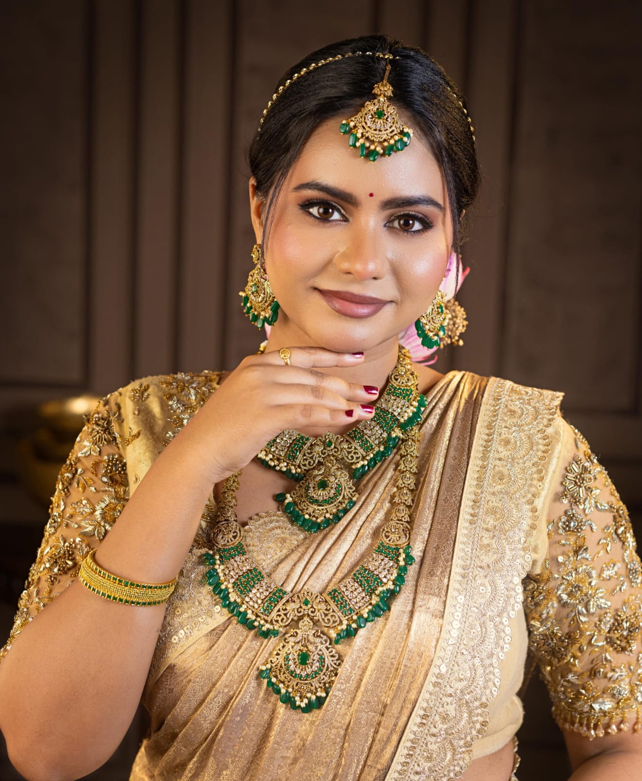 Meet Our renowned MUA, the epitome of elegance and expertise in the world of makeup artistry. With years of experience and a keen eye for detail, she has established herself as a renowned makeup artist. Specializing in bridal makeup, Our renowned MUA crafts stunning looks that blend tradition with contemporary flair, leaving brides feeling confident and radiant on their special day. Her personalized approach and dedication to perfection have earned her a loyal clientele who trust her to enhance their natural beauty and create unforgettable transformations. Our renowned MUA's passion for her craft shines through in every stroke of her brush, making her a sought-after name in the industry.