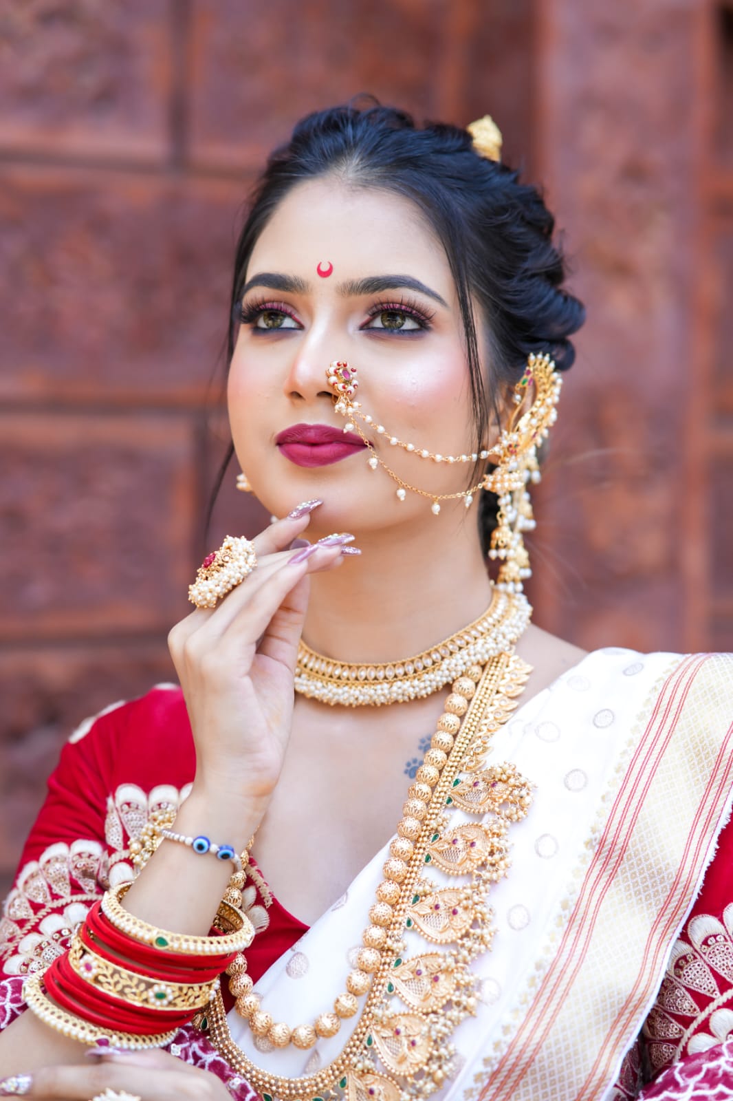 Meet Our renowned MUA, the epitome of elegance and expertise in the world of makeup artistry. With years of experience and a keen eye for detail, she has established herself as a renowned makeup artist. Specializing in bridal makeup, Our renowned MUA crafts stunning looks that blend tradition with contemporary flair, leaving brides feeling confident and radiant on their special day. Her personalized approach and dedication to perfection have earned her a loyal clientele who trust her to enhance their natural beauty and create unforgettable transformations. Our renowned MUA's passion for her craft shines through in every stroke of her brush, making her a sought-after name in the industry.